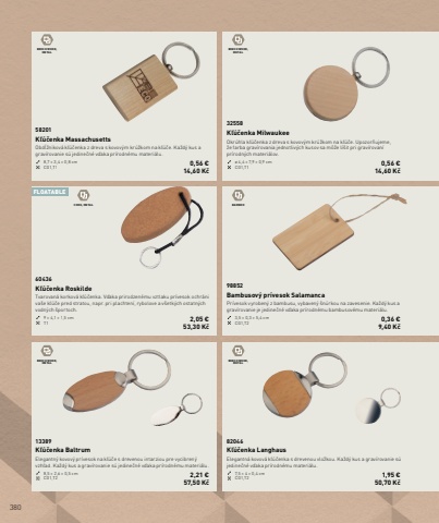 380BEECH WOOD, METALBEECH WOOD, METALBEECH WOOD, METALCORK, METAL BAMBOOBEECH WOOD, METALFLOATABLE13389K%u013e%u00fa%u010denka BaltrumElegantn%u00fd kovov%u00fd pr%u00edvesok na k%u013e%u00fa%u010de s drevenou intarziou pre vycibren%u00fd vzh%u013ead. Ka%u017ed%u00fd kus a grav%u00edrovanie s%u00fa jedine%u010dn%u00e9 v%u010faka pr%u00edrodn%u00e9mu materi%u00e1lu.8,5 %u00d7 2,6 %u00d7 0,5 cm CG1,T2 2,21 %u20ac57,50 K%u010d82046K%u013e%u00fa%u010denka LanghausElegantn%u00e1 kovov%u00e1 k%u013e%u00fa%u010denka s drevenou vlo%u017ekou. Ka%u017ed%u00fd kus a grav%u00edrovanie s%u00fa jedine%u010dn%u00e9 v%u010faka pr%u00edrodn%u00e9mu materi%u00e1lu.7,5 %u00d7 4 %u00d7 0,4 cm CG1,T2 1,95 %u20ac50,70 K%u010d98852Bambusov%u00fd pr%u00edvesok SalamancaPr%u00edvesok vyroben%u00fd z bambusu, vybaven%u00fd %u0161n%u00farkou na zavesenie. Ka%u017ed%u00fd kus a grav%u00edrovanie je jedine%u010dn%u00e9 v%u010faka pr%u00edrodn%u00e9mu bambusov%u00e9mu materi%u00e1lu.3,5 %u00d7 0,3 %u00d7 5,4 cm CG1,T2 0,36 %u20ac 9,40 K%u010d60436K%u013e%u00fa%u010denka RoskildeTvarovan%u00e1 korkov%u00e1 k%u013e%u00fa%u010denka. V%u010faka prirodzen%u00e9mu vztlaku pr%u00edvesok ochr%u00e1ni va%u0161e k%u013e%u00fa%u010de pred stratou, napr. pri plachten%u00ed, rybolove a v%u0161etk%u00fdch ostatn%u00fdch vodn%u00fdch %u0161portoch.9 %u00d7 4,1 %u00d7 1,5 cm T1 2,05 %u20ac 53,30 K%u010d32558K%u013e%u00fa%u010denka MilwaukeeOkr%u00fahla k%u013e%u00fa%u010denka z dreva s kovov%u00fdm kr%u00fa%u017ekom na k%u013e%u00fa%u010de. Upozor%u0148ujeme, %u017ee farba grav%u00edrovania jednotliv%u00fdch kusov sa m%u00f4%u017ee l%u00ed%u0161it pri grav%u00edrovan%u00ed pr%u00edrodn%u00fdch materi%u00e1lov.%u00f8 4,4 %u00d7 7,9 %u00d7 0,9 cm CG1,T1 0,56 %u20ac14,60 K%u010d58201K%u013e%u00fa%u010denka MassachusettsObd%u013a%u017enikov%u00e1 k%u013e%u00fa%u010denka z dreva s kovov%u00fdm kr%u00fa%u017ekom na k%u013e%u00fa%u010de. Ka%u017ed%u00fd kus a grav%u00edrovanie s%u00fa jedine%u010dn%u00e9 v%u010faka pr%u00edrodn%u00e9mu materi%u00e1lu.8,7 %u00d7 3,4 %u00d7 0,8 cm CG1,T1 0,56 %u20ac14,60 K%u010d