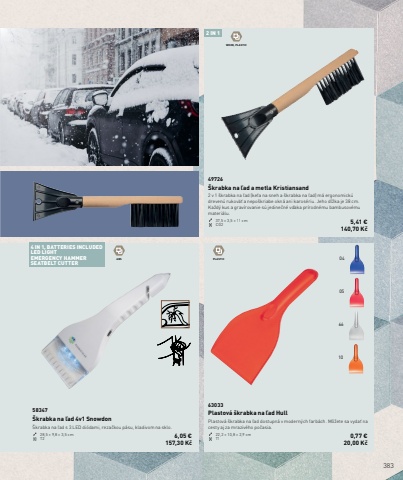 383106605042 IN 14 IN 1, BATTERIES INCLUDEDLED LIGHTEMERGENCY HAMMERSEATBELT CUTTERWOOD, PLASTICABS PLASTIC63033Plastov%u00e1 %u0161krabka na %u013ead HullPlastov%u00e1 %u0161krabka na %u013ead dostupn%u00e1 v modern%u00fdch farb%u00e1ch. M%u00f4%u017eete sa vyda%u0165 na cesty aj za mraziv%u00e9ho po%u010dasia.22,2 %u00d7 10,8 %u00d7 2,9 cm T1 0,77 %u20ac20,00 K%u010d49726%u0160krabka na %u013ead a metla Kristiansand2 v 1 %u0161krabka na %u013ead (kefa na sneh a %u0161krabka na %u013ead) m%u00e1 ergonomick%u00fa dreven%u00fa rukov%u00e4%u0165 a nepo%u0161kriabe okn%u00e1 ani karos%u00e9riu. Jeho d%u013a%u017eka je 38 cm. Ka%u017ed%u00fd kus a grav%u00edrovanie s%u00fa jedine%u010dn%u00e9 v%u010faka pr%u00edrodn%u00e9mu bambusov%u00e9mu materi%u00e1lu.37,5 %u00d7 3,5 %u00d7 11 cm CG2 5,41 %u20ac140,70 K%u010d58347%u0160krabka na %u013ead 4v1 Snowdon%u0160krabka na %u013ead s 3 LED di%u00f3dami, reza%u010dkou p%u00e1su, kladivom na sklo.28,5 %u00d7 9,8 %u00d7 3,5 cm T2 6,05 %u20ac 157,30 K%u010d