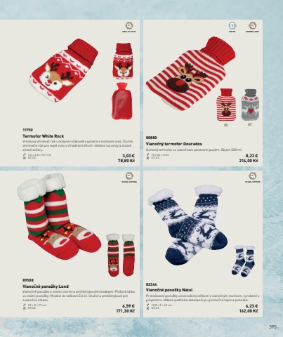 39505 07KNIT, PLASTICPLUSH, COTTON PLUSH, COTTON500 ML RUBBER, KNIT89508Viano%u010dn%u00e9 pono%u017eky LundViano%u010dn%u00e9 pono%u017eky s los%u00edmi vzormi a proti%u0161mykov%u00fdmi bodkami. Ply%u0161ov%u00e1 l%u00e1tka vo vn%u00fatri pono%u017eky. Vhodn%u00e9 do ve%u013ekosti EU 41. %u00datuln%u00e9 a proti%u0161mykov%u00e9 pre sviato%u010dn%u00fa n%u00e1ladu.23 %u00d7 8 %u00d7 27 cm DT,S2 6,59 %u20ac 171,30 K%u010d11750Termofor White RockVreckov%u00fd ohrieva%u010d r%u00fak v dizajne rol%u00e1kov%u00e9ho goliera s mot%u00edvom losa. %u00datuln%u00e9 ohrieva%u010de r%u00fak pre tepl%u00e9 ruky v chladn%u00fdch d%u0148och. Ide%u00e1lne na cesty a %u00fatuln%u00e9 zimn%u00e9 ve%u010dery.7,2 %u00d7 2,5 %u00d7 13,7 cm DT,S2 3,03 %u20ac 78,80 K%u010d80880Viano%u010dn%u00fd termofor DouradosGumen%u00fd termofor vo viano%u010dnom pletenom puzdre. Objem 500 ml.15 %u00d7 26 %u00d7 5 cm DT,S2 8,23 %u20ac 214,00 K%u010d82344Viano%u010dn%u00e9 pono%u017eky NatalProtisklzov%u00e9 pono%u017eky univerz%u00e1lnej ve%u013ekosti s viano%u010dn%u00fdm mot%u00edvom, vyroben%u00e9 z polyesteru. M%u00e4kk%u00e1 pod%u0161%u00edvka zabezpe%u010duje v%u00fdnimo%u010dn%u00e9 teplo a pohodlie.10,8 %u00d7 2 %u00d7 43 cm DT,S2 6,23 %u20ac 162,00 K%u010d