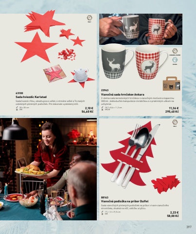 397FELTFELTCERAMIC, PAPER300 ML63100Sada hviezd%u00edc KarlstadSada hviezd z fl%u00edsu, obsahuj%u00faca 4 ve%u013ek%u00e9, 4 stredne ve%u013ek%u00e9 a 74 mal%u00fdch ozdobn%u00fdch plsten%u00fdch podlo%u017eiek. Pre dokonale vyzdoben%u00fd st%u00f4l.30 %u00d7 30 cm VM 2,10 %u20ac54,60 K%u010d23943Viano%u010dn%u00e1 sada hrn%u010dekov Ankara2-dielna sada keramick%u00fdch hrn%u010dekov s viano%u010dn%u00fdm mot%u00edvom a kapacitou 300 ml. Jednoduch%u00e1 manipul%u00e1cia s krabi%u010dkou a s praktick%u00fdm u%u0161kom na uchytenie.18,7 %u00d7 8,6 %u00d7 11,2 cm VM,M 11,36 %u20ac295,40 K%u010d88163Viano%u010dn%u00e1 podlo%u017eka na pr%u00edbor DuffelSada viano%u010dn%u00fdch plsten%u00fdch podlo%u017eiek na pr%u00edbor v tvare viano%u010dn%u00e9ho strom%u010deka, vhodn%u00e1 na n%u00f4%u017e, vidli%u010dku a ly%u017eicu.17 %u00d7 1,5 %u00d7 21,5 cm VM 2,23 %u20ac 58,00 K%u010d
