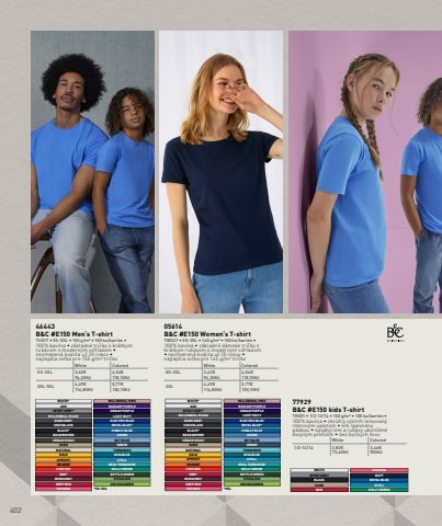 402WHITE*ASHSPORT GREY*MILLENNIAL KHAKIDARK GREYUSED BLACKBLACK*BEAR BROWNURBAN KHAKISANDNATURALGOLDAPRICOTORANGEFIRE REDRED*BURGUNDYDEEP REDFUCHSIAMILLENNIAL PINKRADIANT PURPLEURBAN PURPLELIGHT NAVYELECTRIC BLUEROYAL BLUE*COBALT BLUEAZURESKY BLUEDENIMTURQUOISEDIVA BLUEATOLLREAL TURQUOISEKELLY GREENBOTTLE GREENPISTACHIOORCHID GREEN*3XLWHITESPORT GREYBLACKSANDREDFUCHSIANAVYROYAL BLUEATOLLKELLY GREENWHITE*ASHSPORT GREY*MILLENNIAL KHAKIDARK GREYUSED BLACKBLACK*BEAR BROWNURBAN KHAKISANDNATURALGOLDAPRICOTORANGEFIRE REDRED*BURGUNDYDEEP REDFUCHSIAMILLENNIAL PINKRADIANT PURPLEURBAN PURPLELIGHT NAVYELECTRIC BLUEROYAL BLUE*COBALT BLUEAZURESKY BLUEDENIMTURQUOISEDIVA BLUEATOLLREAL TURQUOISEKELLY GREENBOTTLE GREENPISTACHIOORCHID GREEN*XS-5XL05614B&C #E150 Women%u2018s T-shirtTW02T %u2022 XS-3XL %u2022 145 g/m%u00b2 %u2022 100 ks/kart%u00f3n %u2022 100% bavlna %u2022 z%u00e1kladn%u00e9 d%u00e1mske tri%u010dko s kr%u00e1tkym ruk%u00e1vom s modern%u00fdm vzh%u013eadom %u2022 nezmenen%u00e1 kvalita u%u017e 20 rokov %u2022 najlep%u0161ia vo%u013eba pre 145 g/m%u00b2 tri%u010dkoWhite ColoredXS-2XL 3,62%u20ac94,20K%u010d4,54%u20ac118,10K%u010d3XL 4,49%u20ac116,80K%u010d5,77%u20ac150,10K%u010d77929B&C #E150 kids T-shirtTK001 %u2022 1/2-12/14 %u2022 150 g/m%u00b2 %u2022 100 ks/kart%u00f3n %u2022 100% bavlna %u2022 okr%u00fahly v%u00fdstrih lemovan%u00fd rebrov%u00fdm %u00fapletom %u2022 krk spevnen%u00fd p%u00e1skou %u2022 spodn%u00fd lem a ruk%u00e1vy ukon%u010den%u00e9 dvojit%u00fdm pre%u0161it%u00edm %u2022 bez bo%u010dn%u00fdch %u0161vovWhite Colored1/2-12/14 2,82%u20ac73,40K%u010d3,46%u20ac900K%u010d46443B&C #E150 Men%u2018s T-shirtTU01T %u2022 XS-5XL %u2022 150 g/m%u00b2 %u2022 100 ks/kart%u00f3n %u2022 100% bavlna %u2022 z%u00e1kladn%u00e9 tri%u010dko s kr%u00e1tkym ruk%u00e1vom s modern%u00fdm vzh%u013eadom %u2022 nezmenen%u00e1 kvalita u%u017e 20 rokov %u2022 najlep%u0161ia vo%u013eba pre 150 g/m%u00b2 tri%u010dkoWhite ColoredXS-2XL 3,62%u20ac94,20K%u010d4,54%u20ac118,10K%u010d3XL-5XL 4,49%u20ac116,80K%u010d5,77%u20ac150,10K%u010d