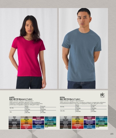 405WHITE*ASHPACIFIC GREYSPORT GREY*DARK GREYUSED BLACKBLACK*BROWNCHOCOLATEURBAN KHAKISANDNATURALPIXEL LIMEGOLDAPRICOTORANGEURBAN ORANGESUNSET ORANGEFIRE REDRED*BURGUNDYSORBETORCHID PINKMILLENNIAL LILACRADIANT PURPLEURBAN PURPLENAVY*ROYAL BLUE*COBALT BLUESKY BLUESTONE BLUEDIVA BLUEATOLLSWIMMING POOLMILLENNIAL MINTKELLY GREENBOTTLE GREENORCHID GREEN*XS-3XLWHITE*ASHPACIFIC GREYSPORT GREY*DARK GREYUSED BLACKBLACK*BROWNCHOCOLATEURBAN KHAKISANDNATURALPIXEL LIMEGOLDAPRICOTORANGEURBAN ORANGESUNSET ORANGEFIRE REDRED*BURGUNDYSORBETORCHID PINKMILLENNIAL LILACRADIANT PURPLEURBAN PURPLENAVY*ROYAL BLUE*COBALT BLUESKY BLUESTONE BLUEDIVA BLUEATOLLSWIMMING POOLMILLENNIAL MINTKELLY GREENBOTTLE GREENORCHID GREEN*XS-5XL02936B&C #E190 Men%u2018s T-shirtTU03T %u2022 XS-5XL %u2022 185 g/m%u00b2 %u2022 100 ks/kart%u00f3n %u2022 100% bavlna %u2022 z%u00e1kladn%u00e9 tri%u010dko s kr%u00e1tkym ruk%u00e1vom s modern%u00fdm vzh%u013eadom %u2022 nezmenen%u00e1 kvalita u%u017e 20 rokov %u2022 najlep%u0161ia vo%u013eba pre 185 g/m%u00b2 tri%u010dkoWhite ColoredXS-2XL 4,85%u20ac126,10K%u010d5,79%u20ac150,60K%u010d3XL-5XL 6,08%u20ac158,10K%u010d7,38%u20ac191,90K%u010d44872B&C #E190 Women%u2018s T-shirtTW04T %u2022 XS-3XL %u2022 185 g/m%u00b2 %u2022 100 ks/kart%u00f3n %u2022 100% bavlna %u2022 z%u00e1kladn%u00e9 d%u00e1mske tri%u010dko s kr%u00e1tkym ruk%u00e1vom s modern%u00fdm vzh%u013eadom %u2022 nezmenen%u00e1 kvalita u%u017e 20 rokov %u2022 najlep%u0161ia vo%u013eba pre 185 g/m%u00b2 tri%u010dkoWhite ColoredXS-2XL 4,85%u20ac126,10K%u010d5,79%u20ac150,60K%u010d3XL 6,08%u20ac158,10K%u010d7,38%u20ac191,90K%u010d