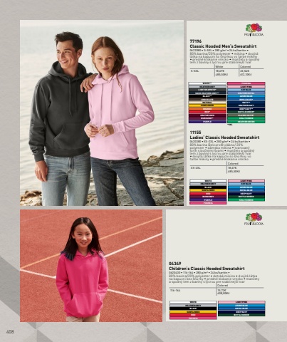 408WHITEHEATHER GREYBLACKSUNFLOWERREDFUCHSIALIGHT PINKAZURE BLUEROYAL BLUEDEEP NAVYBOTTLE GREENWHITE**HEATHER GREYLIGHT GRAPHITE*DARK HEATHER GREY**BLACK**CHOCOLATENATURALSUNFLOWERORANGERED*HEATHER REDBURGUNDY*PURPLEFUCHSIALIGHT PINKSKY BLUEHEATHER ROYALAZURE BLUEROYAL BLUE*NAVY**HEATHER NAVYDEEP NAVY**BOTTLE GREEN*CLASSIC OLIVE*KELLY GREENHEATHER GREEN*3XLWHITEHEATHER GREYBLACKSUNFLOWERREDBURGUNDYPURPLEFUCHSIALIGHT PINKSKY BLUEAZURE BLUEROYAL BLUEDEEP NAVYBOTTLE GREENKELLY GREEN04349Children%u2018s Classic Hooded Sweatshirt 0620430 %u2022 116-164 %u2022 280 g/m%u00b2 %u2022 24 ks/kart%u00f3n %u2022 80% bavlna/20% polyester %u2022 detsk%u00e1 mikina %u2022 dvojit%u00e1 l%u00e1tka na kapucni bez %u0161n%u00farky %u2022 predn%u00e9 klokanie vrecko %u2022 man%u017eety a spodn%u00fd lem z bavlny s lycrou pre stabilnej%u0161%u00ed tvarColored116-164 15,72%u20ac408,80K%u010d77196Classic Hooded Men%u2018s Sweatshirt0622080 %u2022 S-5XL %u2022 280%u00a0g/m%u00b2 %u2022 24 ks/kart%u00f3n %u2022 80% bavlna/20% polyester %u2022 mikina %u2022 dvojit%u00e1 l%u00e1tka na kapucni so %u0161n%u00farkou vo farbe mikiny %u2022 predn%u00e9 klokanie vrecko %u2022 man%u017eety a spodn%u00fd lem z bavlny s lycrou pre stabilnej%u0161%u00ed tvarWhite ColoredS-5XL 18,67%u20ac485,50K%u010d23,54%u20ac612,10K%u010d11155Ladies%u2018 Classic Hooded Sweatshirt0620380 %u2022 XS-2XL %u2022 280%u00a0g/m%u00b2 %u2022 24 ks/kart%u00f3n %u2022 80% bavlna Belcoro%u00ae vl%u00e1kno/ 20% polyester %u2022 d%u00e1mska mikina %u2022 tvarovan%u00fd strih s bo%u010dn%u00fdmi %u0161vami %u2022 man%u017eety a spodn%u00fd lem z bavlny s lycrou pre stabilnej%u0161%u00ed tvar %u2022 dvojit%u00e1 l%u00e1tka na kapucni so %u0161n%u00farkou vo farbe mikiny %u2022 predn%u00e9 klokanie vreckoColoredXS-2XL 18,67%u20ac485,50K%u010d