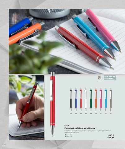 36771411100906050403SEMI-GEL INKBLUE REFILLALUMINIUM52728Pologelov%u00e9 gu%u013e%u00f4%u010dkov%u00e9 pero AlmeiraGu%u013e%u00f4%u010dkov%u00e9 pero z hlin%u00edka s modrou semi-g%u00e9lovou n%u00e1pl%u0148ou (hrot 1 mm) s rebrovan%u00fdm %u00fachopom.%u00f8 1 %u00d7 14,2 cm G0,G1,T2 0,87 %u20ac 22,60 K%u010d
