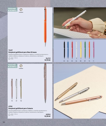3803 04 05 06 100908 11980795TOUCH PENBLUE REFILLTOUCH PENBLUE REFILLALUMINIUMALUMINIUM72427Dotykov%u00e9 gu%u013e%u00f4%u010dkov%u00e9 pero New OrleansHlin%u00edkov%u00e9 gu%u013e%u00f4%u010dkov%u00e9 pero s plastovou n%u00e1pl%u0148ou s modr%u00fdm atramentom a farebne zladenou dotykovou funkciou umiestnenou nad klipom.%u00f8 0,8 %u00d7 13,8 cm G1,T4 0,41 %u20ac10,70 K%u010d69765Dotykov%u00e9 gu%u013e%u00f4%u010dkov%u00e9 pero CataniaKovov%u00e9 gu%u013e%u00f4%u010dkov%u00e9 pero s plastovou n%u00e1pl%u0148ou s modr%u00fdm atramentom a farebne zladenou dotykovou funkciou umiestnenou nad klipom.%u00f8 0,8 %u00d7 13,8 cm G1,T4 0,59 %u20ac15,30 K%u010d