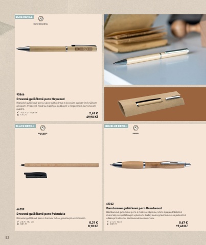 52BLUE REFILLBLACK REFILL BIG BLUE REFILLMAPLE WOOD, METALBEECH WOOD, PLASTICBAMBOO95866Dreven%u00e9 gu%u013e%u00f4%u010dkov%u00e9 pero HeywoodKlasick%u00e9 gu%u013e%u00f4%u010dkov%u00e9 pero z javorov%u00e9ho dreva s kovov%u00fdm ozdobn%u00fdm kr%u00fa%u017ekom a klipom. Vybaven%u00e9 modrou n%u00e1pl%u0148ou, dod%u00e1van%u00e9 v elegantnom kart%u00f3novom puzdre.15,4 %u00d7 2,7 %u00d7 0,9 cm CG2,T2 2,69 %u20ac69,90 K%u010d66359Dreven%u00e9 gu%u013e%u00f4%u010dkov%u00e9 pero PalmdaleDreven%u00e9 gu%u013e%u00f4%u010dkov%u00e9 pero s %u010diernou tuhou, plastov%u00fdm vrchn%u00e1kom.%u00f8 0,7 %u00d7 15,1 cm CG1,T1 0,31 %u20ac8,10 K%u010d61062Bambusov%u00e9 gu%u013e%u00f4%u010dkov%u00e9 pero BrentwoodBambusov%u00e9 gu%u013e%u00f4%u010dkov%u00e9 pero s modrou n%u00e1pl%u0148ou, ktor%u00e9 sp%u00e1ja udr%u017eate%u013en%u00e9 materi%u00e1ly so spo%u013eahliv%u00fdm v%u00fdkonom. Ka%u017ed%u00fd kus a grav%u00edrovanie s%u00fa jedine%u010dn%u00e9 v%u010faka pr%u00edrodn%u00e9mu bambusov%u00e9mu materi%u00e1lu.%u00f8 1,2 %u00d7 14 cm CG1,T1 0,67 %u20ac17,40 K%u010d
