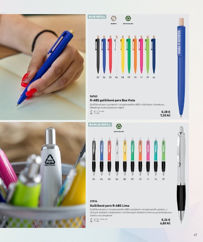 612914111009080605040344291110090806050403BLUE REFILLBIG BLUE REFILLRECYCLED ABSRECYCLED ABSBAMBOO31514Gu%u013e%u00f4%u010dkov%u00e9 pero R-ABS LimaGu%u013e%u00f4%u010dkov%u00e9 pero z recyklovan%u00e9ho ABS vyroben%u00e9 z recyklovan%u00e9ho plastu, v r%u00f4znych farb%u00e1ch s doplnkami v chr%u00f3mov%u00fdch farb%u00e1ch a %u010diernou proti%u0161mykovou %u010das%u0165ou na uchopenie.%u00f8 1,3 %u00d7 14,6 cm T1,UV 0,26 %u20ac 6,80 K%u010d56743R-ABS gu%u013e%u00f4%u010dkov%u00e9 pero Boa VistaGu%u013e%u00f4%u010dkov%u00e9 pero vyroben%u00e9 z recyklovan%u00e9ho ABS s tla%u010didlom z bambusu. Obsahuje modr%u00fa plastov%u00fa n%u00e1pl%u0148.%u00f8 1 %u00d7 14 cm T1,UV 0,28 %u20ac 7,30 K%u010d