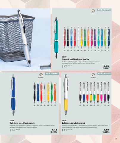 6303 04 05 08 09 06 10 03 1009080504 44121102 03 04 05 06 09 10 11 12 2414 08 29 44BIG BLUE REFILLBIG BLUE REFILL BIG BLUE REFILLABS & METAL ABS & METAL ABS & METAL 21213Gu%u013e%u00f4%u010dkov%u00e9 pero WladiwostockPlastov%u00e9 gu%u013e%u00f4%u010dkov%u00e9 pero s telom a %u00fachopovou z%u00f3nou v rovnakom odtieni, vybaven%u00e9 ve%u013ekokapacitnou modrou n%u00e1pl%u0148ou.%u00f8 1,3 %u00d7 14,5 cm T1,UV 0,21 %u20ac5,50 K%u010d68569Plastov%u00e9 gu%u013e%u00f4%u010dkov%u00e9 pero MoscowPlastov%u00e9 gu%u013e%u00f4%u010dkov%u00e9 pero s ergonomickou %u00fachopovou z%u00f3nou a ve%u013ekokapacitnou modrou n%u00e1pl%u0148ou pre plynul%u00e9 p%u00edsanie.%u00f8 1,3 %u00d7 14,5 cm T1,UV 0,21 %u20ac5,50 K%u010d48485Gu%u013e%u00f4%u010dkov%u00e9 pero KaliningradPlastov%u00e9 gu%u013e%u00f4%u010dkov%u00e9 pero s bielym telom, kovovou klipou, ve%u013ekokapacitnou modrou n%u00e1pl%u0148ou a farebnou gumovou %u00fachopovou z%u00f3nou.%u00f8 1,3 %u00d7 14,5 cm T1,UV 0,21 %u20ac5,50 K%u010d