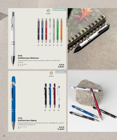 6403 04 05 0610090706050403BLUE REFILLABS, METAL ABS, METAL BIG BLUE REFILL63132Gu%u013e%u00f4%u010dkov%u00e9 pero EppingPlastov%u00e9 gu%u013e%u00f4%u010dkov%u00e9 pero s metalick%u00fdm povrchom, ve%u013ekokapacitnou n%u00e1pl%u0148ou a tla%u010didlov%u00fdm mechanizmom.%u00f8 1 %u00d7 14,5 cm T1 0,44 %u20ac 11,40 K%u010d82525Gu%u013e%u00f4%u010dkov%u00e9 pero BaltimorePlastov%u00e9 gu%u013e%u00f4%u010dkov%u00e9 pero s modrou plastovou n%u00e1pl%u0148ou a strieborn%u00fdmi prvkami.%u00f8 1 %u00d7 13,8 cm T1,UV 0,33 %u20ac 8,60 K%u010d