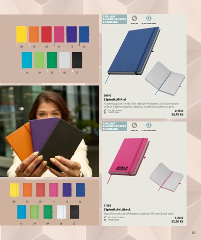 8314 291214 291210 11090810 1109080605 04030605 0403PEN LOOPELASTIC CLOSUREBOOKMARKPEN LOOPELASTIC CLOSUREBOOKMARKPAPER, PU A5, 160 BLANK PAGESPAPER, PU A6, 190 BLANK PAGES51683Z%u00e1pisn%u00edk A6 L%u00fcbeckZ%u00e1pisn%u00edk form%u00e1tu A6 s PU obalom, obsahuje 190 neutr%u00e1lnych str%u00e1n.9,3 %u00d7 14,4 %u00d7 1,5 cm T2,DT,S2,UV 1,23 %u20ac32,00 K%u010d50492Z%u00e1pisn%u00edk A5 KielPozn%u00e1mkov%u00fd blok form%u00e1tu A5 s m%u00e4kk%u00fdm PU obalom, 160 %u010dist%u00fdch bielych str%u00e1nok. S farebnou gumou, z%u00e1lo%u017ekou a praktickou p%u00fatkom na pero.21 %u00d7 14 %u00d7 1,4 cm T2,DT,S2,UV 2,15 %u20ac55,90 K%u010d