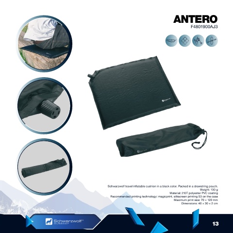 practical straps for easy packing and carrying. Schwarzwolf travel inflatable cushion in a black color. Packed in a drawstring pouch.