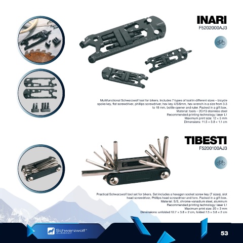 Multifunctional Schwarzwolf tool for bikers. It includes 22 tools: torx screwdriver (3 sizes), bottle opener, flat