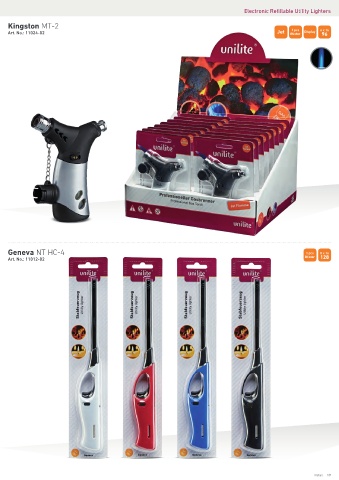 Electronic Refillable Utility Lighters Kingston MT-2 1 pcs Art. No.: 11024-02 Jet Blister Display Geneva NT HC-4 1 pcs Art. No.: 11012-02 Blister Retail 19