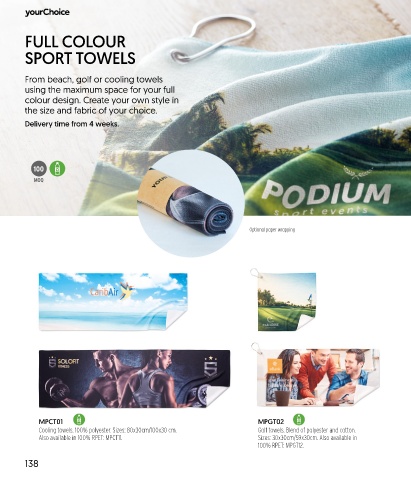 Cooling towels. 100% polyester. Sizes: 80x30cm/100x30 cm. Golf towels. Blend of polyester and cotton.