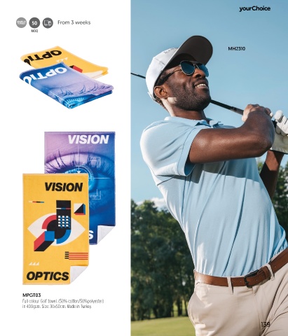50 From 3 weeks MOQ MH2310 MPGT03 Full colour Golf towel. (50% cotton/50%polyester) in 400gsm. Size: 30x50cm. Made in Turkey. 139