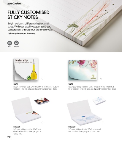 100 sticky notes (80 gsm) and standard “yourNote” back sheet. 50 or 100 sticky notes (80 gsm) and standard “yourNote” back sheet.