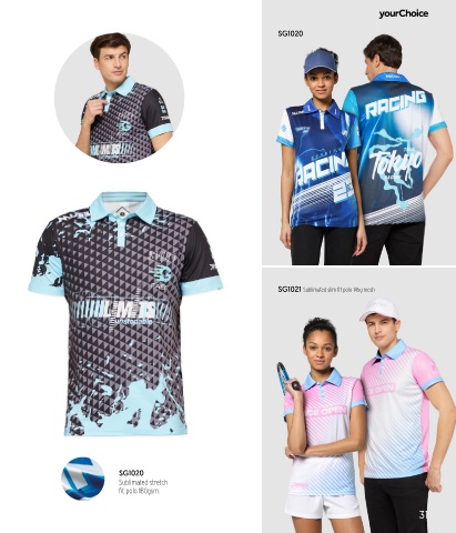 SG1020 SG1021 Sublimated slim fit polo 145g mesh SG1020 Sublimated stretch fit polo 180gsm. 31
