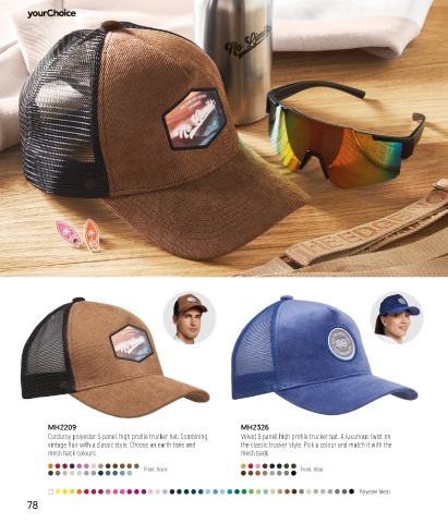 Corduroy polyester 5 panel, high profile trucker hat. Combining Velvet 5 panel, high profile trucker hat. A luxurious twist on