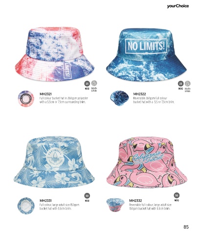 Full colour bucket hat in 260gsm polyester Reversible 260gsm full colour