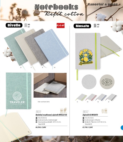 Bavlněný recyklovaný zápisník BIVELLO A5 Zápisník A5 MOSATO