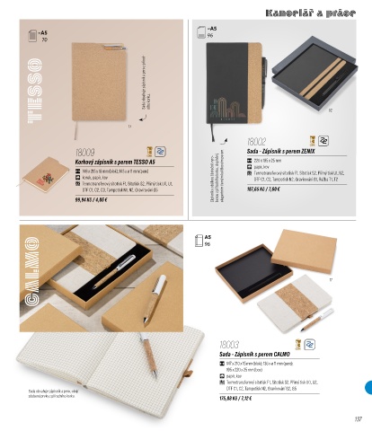 TESSO Sada obsahuje zápisník a pero z přírod- ního korku.