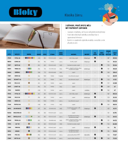 KÓD NÁZEV BARVA FORMÁT POČET STRANA PAPÍRU MATERIÁL DOPLŇKY STUHA PRO PERO KATALOGU (Kč)
