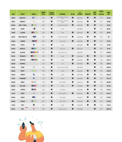 KÓD NÁZEV BARVA [ML] UZAVŘENÍ MATERIÁL UV 360 UZAVŘENÍ RUKOJEŤ FREE KATALOGU [Kč]