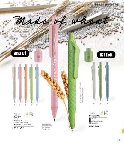Biodegradovatelná hmota vyrobená v 50 % z přírodní slámy. Těleso z bambusu.
