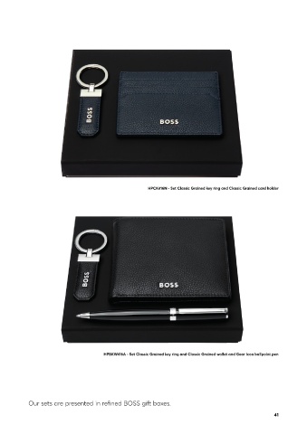 PURE HPCK416N - Set Classic Grained key ring and Classic Grained card holder HPBKW416A - Set Classic Grained key ring and Classic Grained wallet and Gear Icon ballpoint pen Our sets are presented in refined BOSS gift boxes. 41