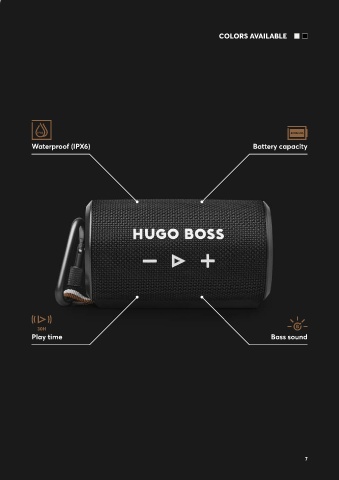 COLORS AVAILABLE Waterproof (IPX6) Battery capacity Play time Bass sound 7