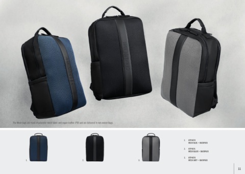 The Mesh bags are made of polyester mesh fabric and vegan leather (PU) and are delivered in non-woven bags. 1. NTP407N MESH BLUE • BACKPACK 2. NTP407A MESH BLACK • BACKPACK 3. NTP407H 1. 2. 3. MESH GREY • BACKPACK 11