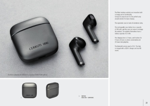 The Mesh earbududs are delivered in a luxurious CERRUTI 1881 gift box.