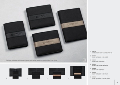 The Delano small leather goods are made of genuine leather and are delivered in a luxurious CERRUTI 1881 gift box. 3. NLC406A