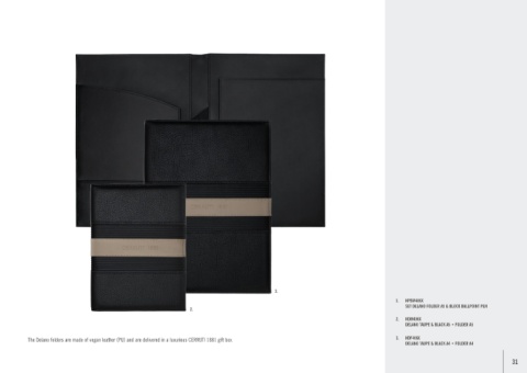 The Delano folders are made of vegan leather (PU) and are delivered in a luxurious CERRUTI 1881 gift box. 3. NDF406X