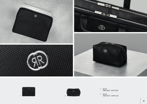 3. NTE329A REGENT BLACK • LAPTOP SLEEVE 4. NTC329A 3. 4. REGENT BLACK • COSMETIC-CASE The Regent bags are made of vegan leather (PU) and are delivered in non-woven bags. 39