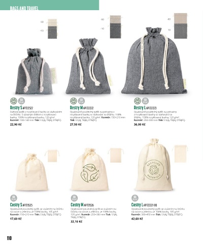 bavlny. 100% recyklovaná bavlna, 120 g/m². recyklovaná bavlna, 120 g/m². Rozměr: 150×210 mm šňůrku. 100% recyklovaná bavlna, 120 g/m².