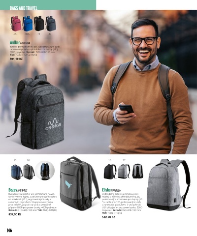 připojení USB pro power banky. 400D polyester. USB připojením pro power banky. 300D