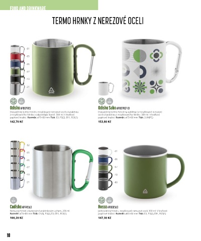 Nerezový hrnek s barevným karabinkovým uchem, 200 ml. Jednostěnný hrnek z recyklované nerezové oceli, 300 ml. V kraftové