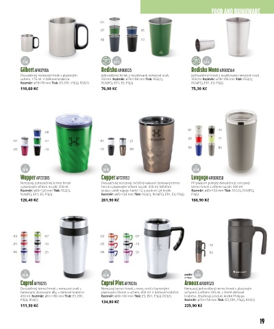 Rozměr: ø83×120 mm Tisk: RS2(1), izolace udrží nápoje horké 12 a studené 24 hodin. Rozměr: ø85×163 mm Tisk: RS1(1), RUV(FC),