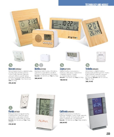 s bambusovým předním panelem. teploměrem, kalendářem a budíkem. bambusu a ABS plastu s teploměrem bambusovým předním panelem. Funkce:
