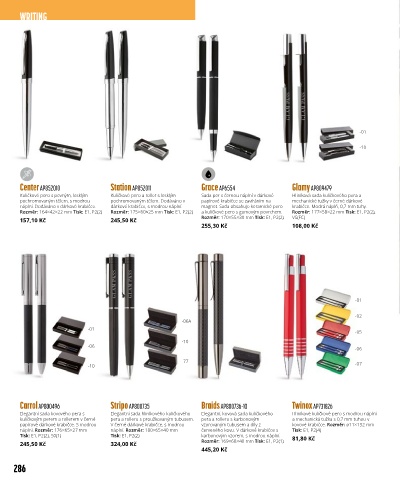Rozměr: 164×42×22 mm Tisk: E1, P2(2) Rozměr: 175×60×25 mm Tisk: E1, P2(2) a kuličkové pero s gumovým povrchem. Rozměr: 177×58×22 mm Tisk: E1, P2(2),