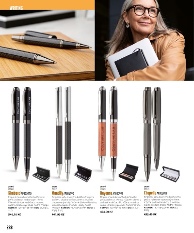 pera a rolleru s karbonovým tělem. a rolleru s karbonovým vzorem a lesklými pera a rolleru s tělem v růžovém dřevu. V pera a rolleru se vzorovaným tělem.