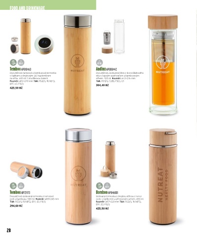 oceli a bambusu. 500 ml. Rozměr: ø69×245 mm oceli, s čajítkemm a přenosným uchem. 450 ml.