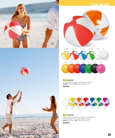 PVC plážový míč, 6 panelů. Délka panelu: 380 mm.