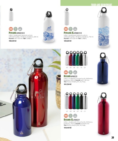 sublimační potisk s hliníkovou karabinou, 400 ml. sublimační potisk s hliníkovou karabinou, 750 ml.