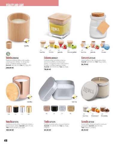 vosku. V kraftové papírové krabici. víčkem. S 50 gramy vosku. Doba hoření: 55,70 Kč