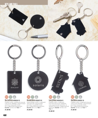 Rozměr: 32×53×2 mm Tisk: E1 Rozměr: ø45×2 mm Tisk: E1 gravírování. Rozměr: 55×30×2 mm Rozměr: 45×38×2 mm Tisk: E1