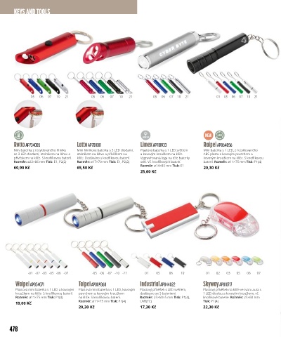 Rozměr: ø11×75 mm Tisk: P1(4) na klíče. S knoflíkovou baterií. Rozměr: 25×60×5 mm Tisk: P1(4), knoflíkové baterie. Rozměr: 25×60 mm