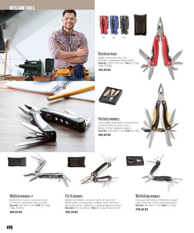 Rozměr: 40×100×13 mm Tisk: E2, P2(2), plechovky a pilka. Dodáváno s polyesterovým pouzdrem. Rozměr: 96×180×27 mm Tisk: E2, P2(2)