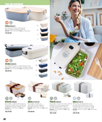 bambusovým víkem, sadou příborů (nůž sadou příborů (nůž a vidlička) a (vidlička, lžíce a nůž) a polyesterovým se sadou příborů (vidlička, lžíce a nůž) a